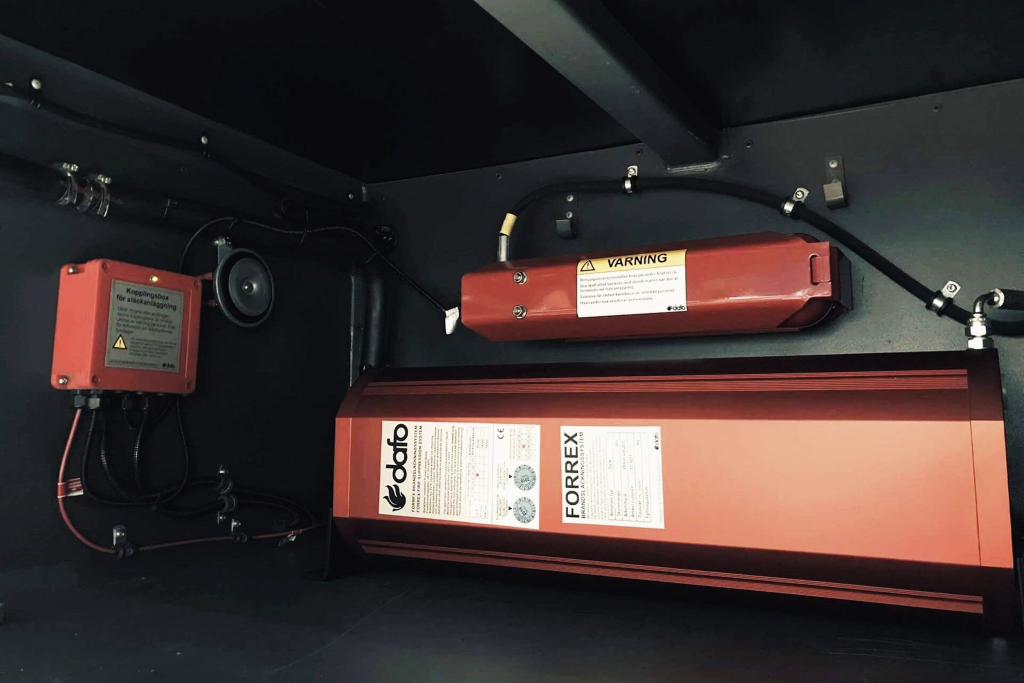 位于驾驶室内部的报警面板将在检测到火灾时发出警报。该系统可以配置为自动释放,也可以在必要时由操作员提供手动释放方式。外部警报将会响起,同时也会提醒操作员以及机器内或附近的任何其他人员注意火灾情况。